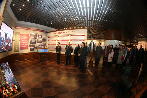 “铭记历史,砥砺前行”,院史馆展示了黑龙江法院的院史文化。教师们参观法治浮雕墙,感受法院人的法律情怀和法治追求。
