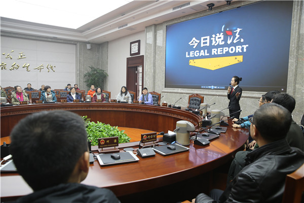 走进审委会会议室,教师们共同观看了央视《今日说法》大法官开庭专题片。