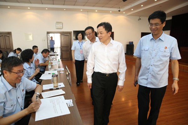 省委常委甘荣坤与石时态院长、省法官遴选委员会主任薄宏奎一同巡视省法院考场。陈凡 摄