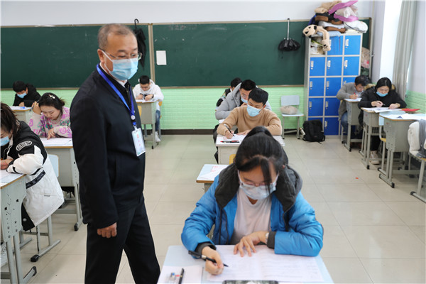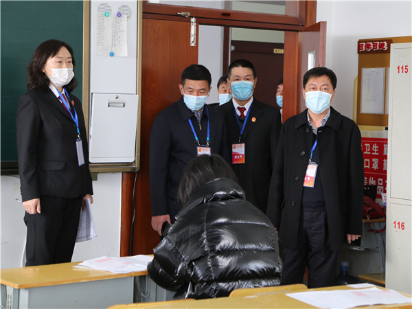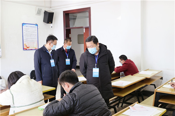 省法院党组成员、政治部主任罗继广在部分考场巡考。隋禹摄
