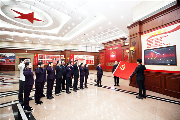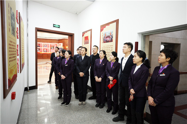 在党建大厅,大家回顾了党的伟大精神、伟大理论,以及近些年党和国家取得的历史性成就。面对党旗,大家举行了宣誓仪式,重温入党誓词。