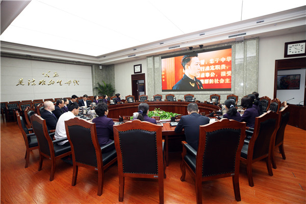 在审委会会议室观看专题片 赵炳松 摄