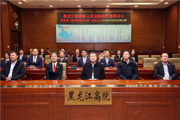在执行指挥中心,大家观看了《基本解决执行难 黑龙江法院在行动》专题片。