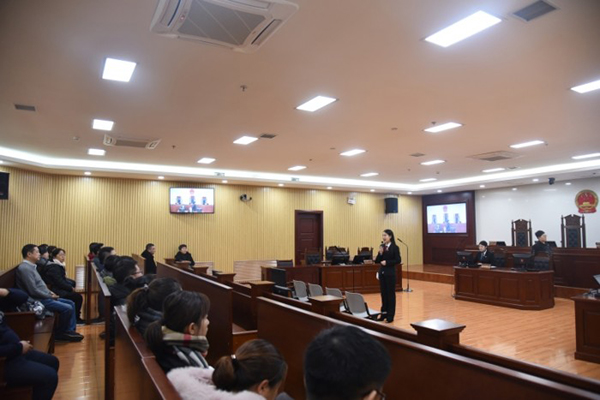 大家在讲解员的带领下依次参观了法院成果展、科技法庭、审委会会议室、诉讼服务中心等场所。在科技法庭,大家旁听了一起行政案件。