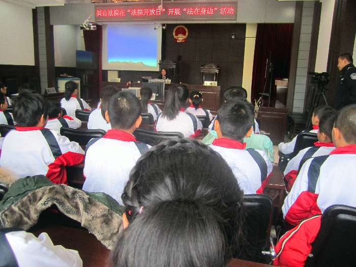 面对辖区留守儿童逐渐增多的现状,在12月4日“法院开放日”和第二个“国家宪法日”前夕,鹤岗市兴山区人民法院开展了“法在身边”活动,让辖区的多所小学分批走进法院,通过法制宣传教育关爱辖区青少年儿童的成长,让这些青少年儿童能在法制的轨道上走好人生的每一步。活动主要分四个版块,一是进行法制教育讲课;二是进行现场互动,引领同学们观看法制图片与法制动画片,学做法官进行现场断案;三是进行现场自动,让同学们自己组织表演法制情景剧;四是参观法院,主要包括参观法庭、着法服模拟法官等等。