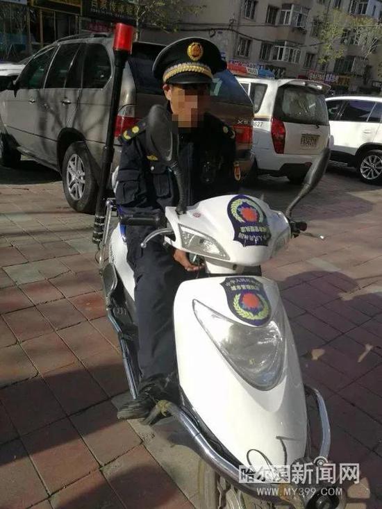 9日9时45分,香坊区城管局执法三科在日常巡视,从单位出来刚过马路到对面的尚志公园,一位身着城管制服的男子引起了工作人员的注意。他将一辆贴有执法标识的摩托车停在路边,身体靠在车上,四下查看周围。