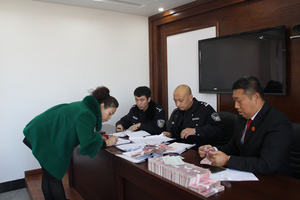 ”活动。建三江农垦法院通过排查摸底、集中清理,执行会战基本收官。近日,执行局和执行一中队向申请执行人的兑现最后一批执行款物。