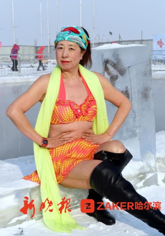 腊八,室外零下30多摄氏度,地表温度零下40多摄氏度的哈尔滨冬泳基地里,有着1米72身高,魔鬼身材和大方的谈吐的孙美英一出场,就把国内外的游客惊得瞠目结舌。在场的人裹得那叫一个严实,只有孙美英穿着泳装,脚蹬过膝高靴,潇洒地走着她的猫步。