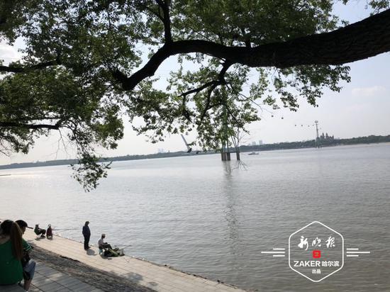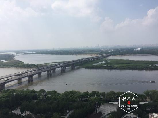 就在 5 月下旬,松花江哈尔滨段水还挺 “ 瘦 ”,行人已经可以从松花江公路大桥北岸桥头下步行至江心岛。