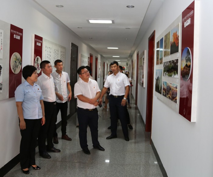 在解说员的引领下,大家依次参观了院训、德柱、法柱、大厅浮雕、文化长廊、党群活动室(党员远程教育中心)、荣誉室、院史室和文化学习中心。参观过程中,大家时而驻足观看,时而拍照留念,详细听解说员介绍绥化中院近年来党的建设、审判执行、优化营商环境等各项工作的主要经验做法和取得成绩。
