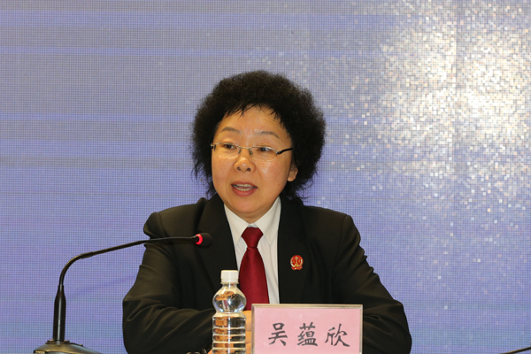 省法院新闻发言人、政治部主任吴蕴欣主持发布会。朱丹钰 摄