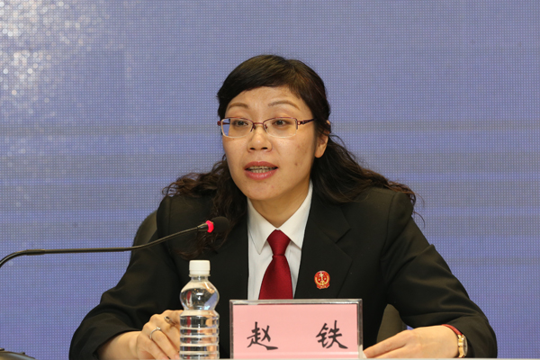 省法院立案一庭庭长赵铁回答记者提问。朱丹钰 摄