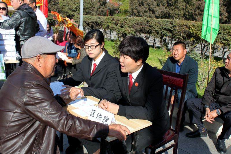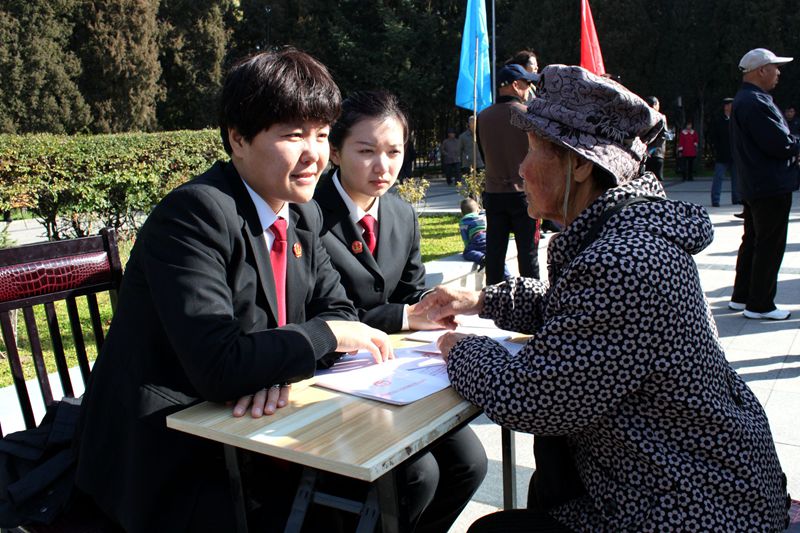 10月16日上午,在全国第三个老年节来临之际,齐齐哈尔市铁锋区法院的法官来到齐齐哈尔铁路南花园小区进行《老年人权益保障法》宣传活动。