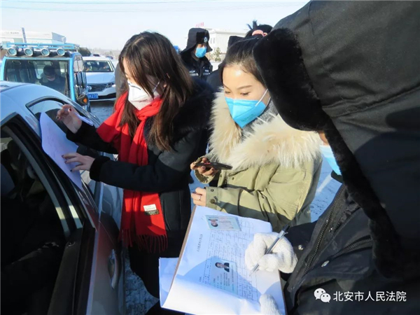 从1月31日开始,北安市法院部分干警就已经投入到抗击新型冠状病毒疫情防控工作中,按照黑河市委、市政府统一部署,严守北安火车站,三班轮流值班站岗。2月1日,接到北安市疫情防控工作领导小组新指令后,北安法院“新型病毒”疫情防控工作领导小组立即调整工作思路,通过北安市法院微信工作群号召全体干警立即投入到工作岗位,安排专人在北安火车站执勤的基础上,协助北安市兆麟社区在北安高速东出口、北出口、完达山道口及铁南道口四处疫情防控点进行排查登记工作。