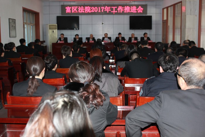 会上,院党组书记、院长谷宏峰对全院2016年的工作给予肯定,并就2017年富区法院的工作作了重要讲话。其他党组成员对自己分管的工作分别做出了安排部署。在会上谷宏峰院长与其他党组成员分别签订了2017年党风廉政建设责任状。