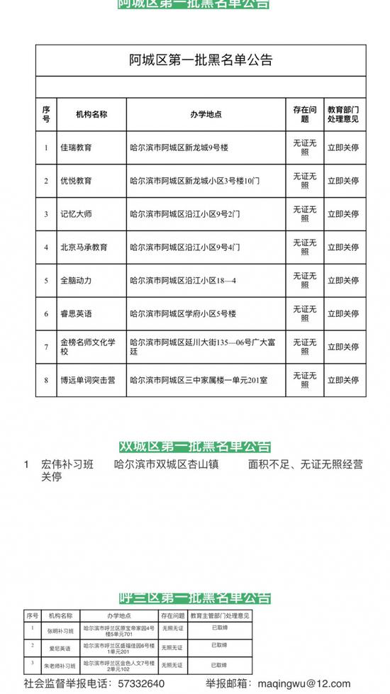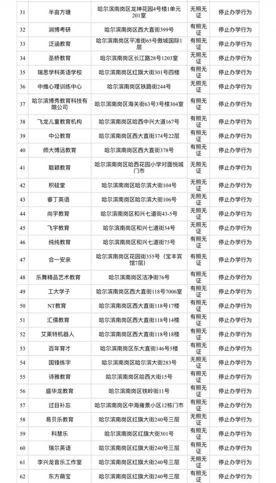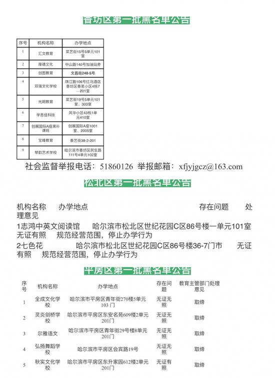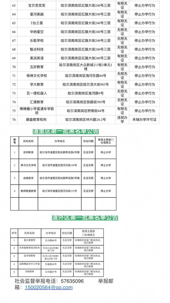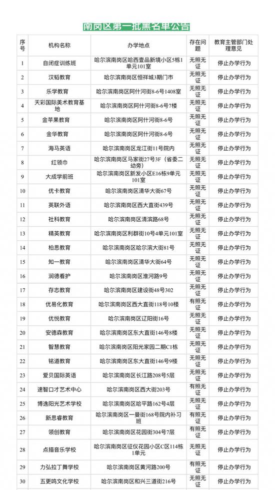 原标题:哈市 9 区首批校外培训机构黑名单公布