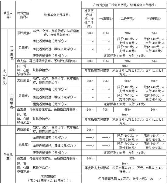 城乡居民医保统筹基金(以下称 “ 统筹基金 ”)最高支付限额为:一档缴费的成人居民、学生儿童 18 万元,二档缴费的成人居民 16 万元。