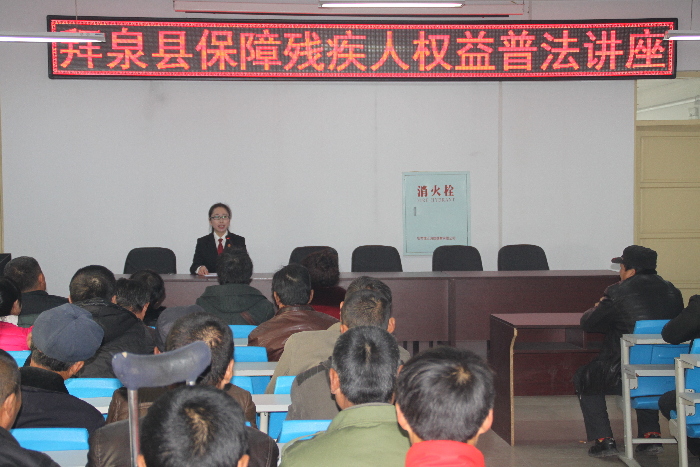 为深入开展法制宣传教育,加强残疾人对保障残疾人法律法规的学习和了解,提高残疾人的依法维权意识和维权能力,提升残疾人自我保护水平,形成保障残疾人权益的良好社会氛围,日前,拜泉法院联合县残联开展了“加强残疾人法制宣传、保障残疾人合法权益”法律宣传咨询活动。为全县四个乡镇500余名残疾人讲授了《残疾人保障法》,并分别为残疾人提供了政策法律宣传,对残疾人如何维权等各类业务项目提供咨询服务。