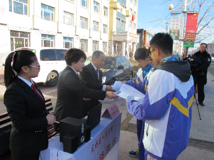 为了让人民群众更全面地知晓刑法修正案(九)的内容,10月30日,伊春市友好区人民法院刑事审判庭全体干警在法院门前设立宣传台,通过播放音频和发放宣传资料的方式向过往群众讲解刑法修正案(九)的主要内容,并对提出的问题耐心解答,通过开展法制宣传,教育、引导群众知法、懂法、守法。