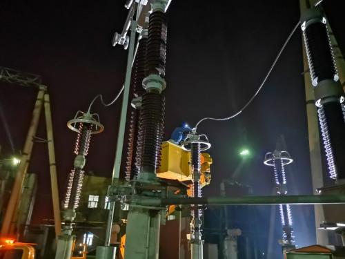 国网哈尔滨供电公司交流220KV哈平运维站220KV东母避雷器引线拆头中 - 新浪黑龙江