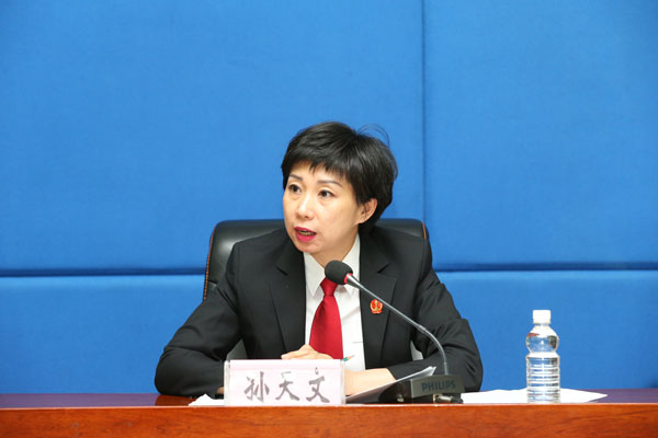 民二庭庭长孙天文回答记者提问。朱丹钰 摄