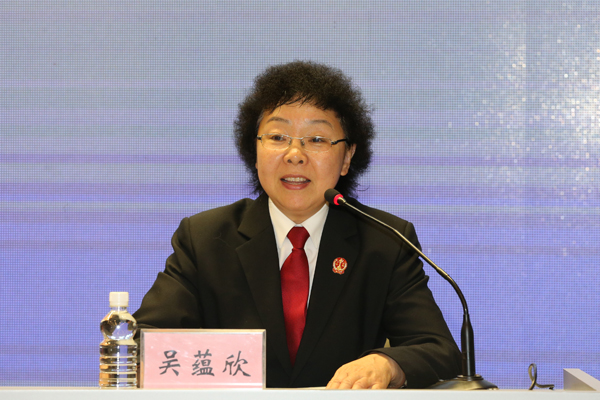省法院新闻发言人、政治部主任吴蕴欣主持发布会。 朱丹钰 摄
