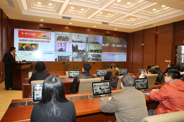 媒体记者在省法院执行指挥中心观看执行指挥系统演示。朱丹钰 摄