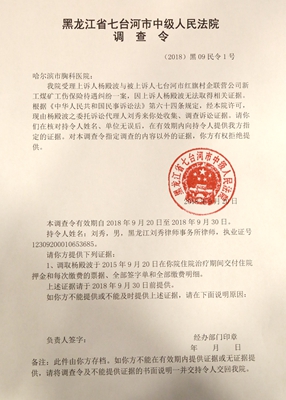 近日,七台河中院民事审判一庭开出一份律师调查令,这是该院签发的首份律师调查令。