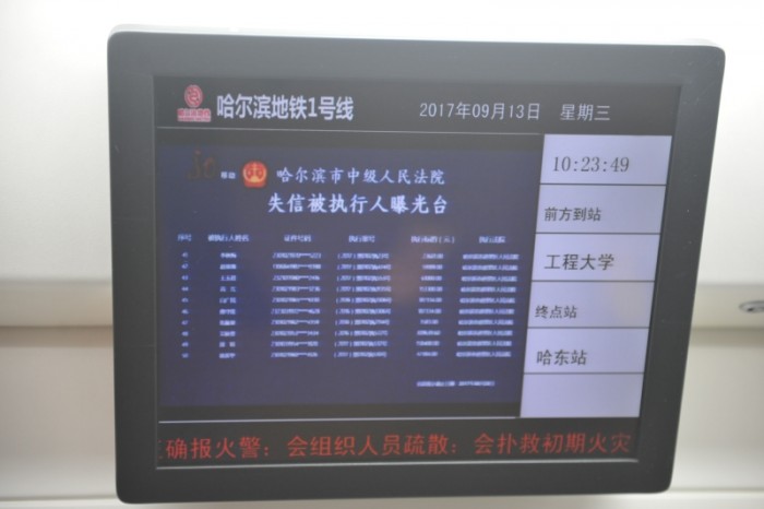 哈尔滨中院借助地铁电子显示屏首次曝光失信被执行人信息