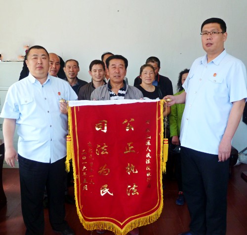 近日,执行申请人高某等11人带着一面写有“公正执法、司法为民”的锦旗走进鸡西市恒山区人民法院执行局办公室,将其郑重交到执行局干警手上,表达自己及工友对人民法院的感激之情。