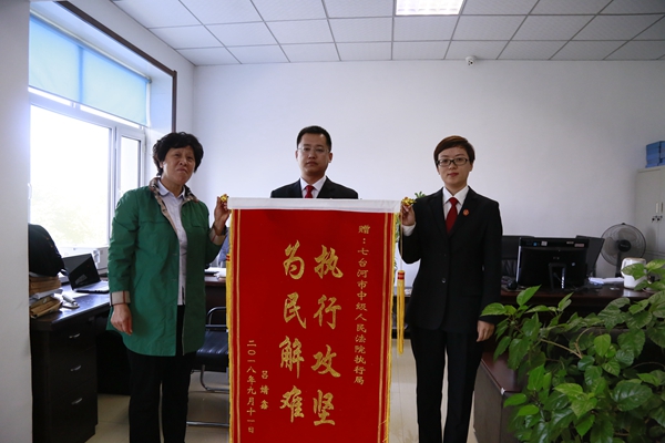 饱含深情的三鞠躬,暖了执行法官的心,热了执行法官的眼。9月13日,七台河中院执行局会议室里,申请执行人吕某鑫的姥姥将一面写有“执行攻坚 为民解难”的锦旗,送到了执行法官手中,并深鞠三躬,表达心中说不完的谢意。