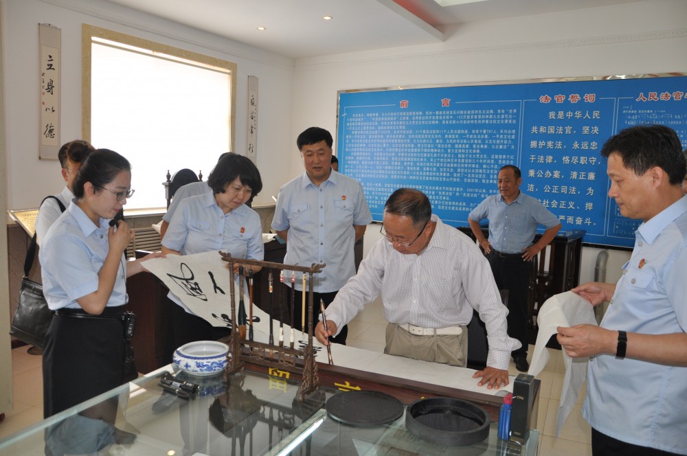 慕平一行先后视察了文化建设展厅、荣誉室、诉讼服务中心、科技法庭、信访接待室、律师值班室,对伊春中院充分利用现有条件,不断完善诉讼功能、为当事人提供优良诉讼环境的作法给予肯定。调研组成员、最高法院咨询委员会委员吕伯涛、罗殿龙还先后题字“春入松下清,露出草间白”和“奉法者强”以示勉励。