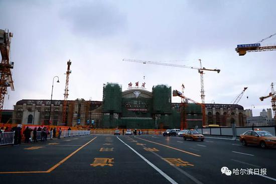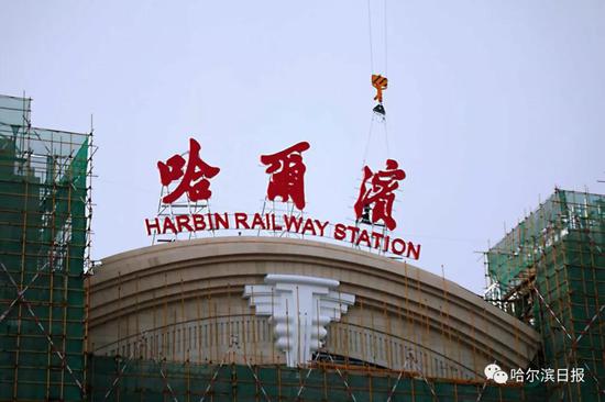 "哈尔滨"三个字亮相哈站南站房 采用毛泽东字体