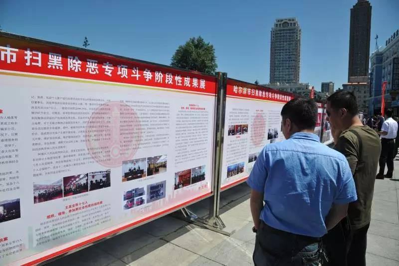 6月16日8时至15时,哈尔滨市扫黑办在防洪纪念塔广场主办“哈尔滨市扫黑除恶专项斗争阶段性成果展”。中央扫黑除恶第14督导组副组长张苏军、哈尔滨督导组组长曹军,由省委常委、政法委书记甘荣坤等省市党政领导同志陪同参观。哈尔滨中院作为主要参展单位,在打击黑恶展示区设置2块展板,同时由院扫黑办派讲解员进行解说、分发宣传品。全面展示、讲解两级法院的打击成果。