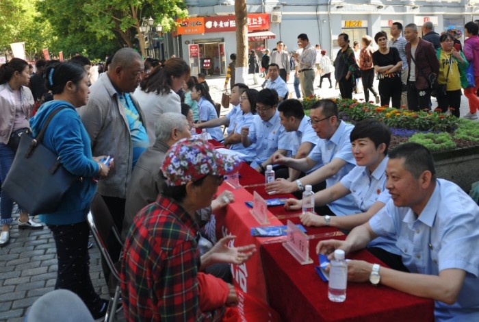 活动中,哈尔滨中院精心布置了法治宣传展板,并通过向沿街居民群众发放宣传资料、现场接受群众咨询等方式,向市民介绍相关法律知识,以案释法、以案宣传,向群众普及法律知识。在法律咨询点,具有丰富审判经验的法官对前来咨询的群众,运用专业知识一一进行解答,并热情细致地为过往群众讲解法律知识。对于群众关注的热点难点问题,有针对性地进行宣传教育,耐心疏导解释,引导群众依法表达利益诉求,维护自身合法权益。