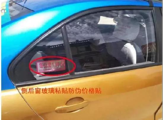 侧后窗玻璃粘贴防伪价格贴