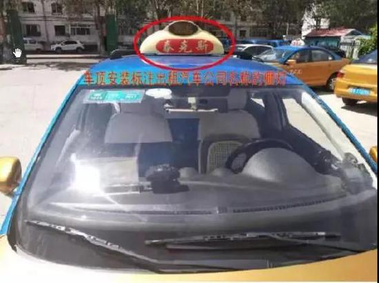 车顶安装标注出租汽车公司名称的棚灯