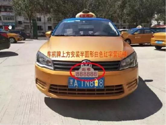 车前牌上方安装半圆形白色红字营运牌