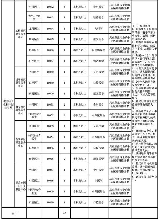 哈尔滨市道里区社区卫生服务中心招聘医疗专业技术人员 87 人报名日期:2018 年 8 月 1 日至 8 月 20 日 ( 报名期间遇节假日及周六、周日正常休息,请考生在下一个工作日报名 ) 。