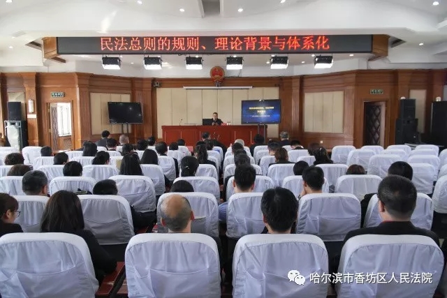 4月26日下午,哈尔滨市香坊区法院“法官讲坛”举办专项民法培训,邀请哈尔滨理工大学法学院民商法学教研室讲师方岩为干警们做主题为“民法总则的规则、理论背景与体系化”的专题讲座。香坊区法院院领导及干警参加培训,聆听讲座。