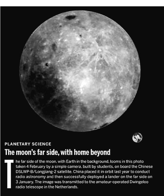 《科学》杂志哈工大“龙江二号”卫星拍摄的地月合影页。
