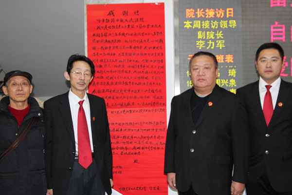 12月10日,哈尔滨铁路某建筑公司负责人赵某一行7人来到哈铁中院,对拖欠18年的900万元建筑工程款案成功执结表示感谢,并送来感谢信。