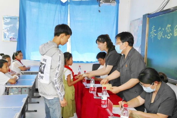 活动现场,法院干警为困难学生送去了衣物、生活用品和8500元慰问金,将党的温暖传递到了每个孩子手中。