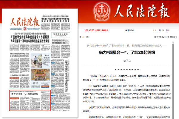 《人民法院报》头版报道:借力“四员合一”,了结25起纠纷