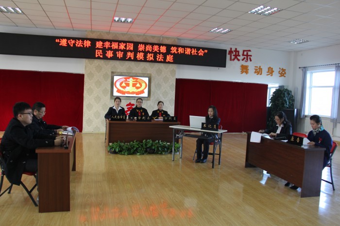 近日,萨区法院铁人法庭郭百哲庭长带领全庭干警走进拥军社区开展普法宣传活动,通过模拟庭审的方式帮助群众加深理解,理论与实践相结合,确保普法宣传落到实处。