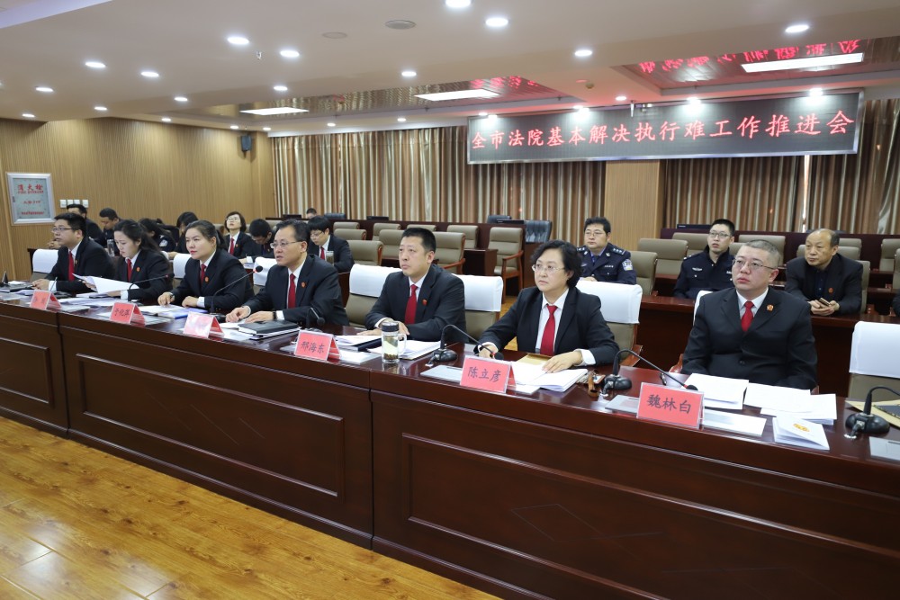 3月12日,大庆中院在执行指挥中心召开全市法院基本解决执行难工作推进会,党组成员、执行局长谢洪程部署开展“油城利剑-2018”百日攻坚专项执行活动,并对执行工作提出严格要求。副处级审判员于化萍主持会议,全市法院主管执行工作的院领导、执行局长、全体执行干警参加会议。