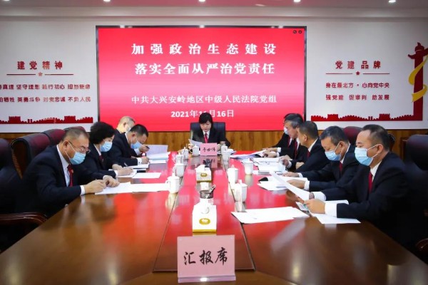 11月16日,大兴安岭中院召开全面从严治党专题会议。会议集体学习《中国共产党党组工作条例》。听取《2021年党风廉政建设工作汇报》《地委政治生态建设成效考核反馈意见整改落实情况》,审议通过《中共大兴安岭地区中级人民法院党组及成员落实全面从严治党责任清单》。