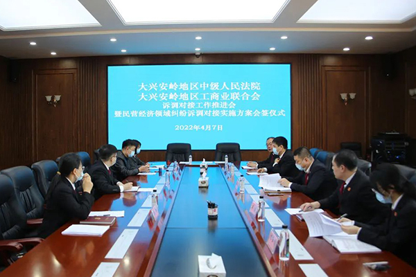 为不断运用法治力量提升营商环境,服务保障民营经济高质量发展。4月7日,大兴安岭中院与大兴安岭地区工商联召开诉调对接工作推进会,会上共同制定并签订了《关于开展民营经济领域纠纷诉调对接工作的实施方案》。