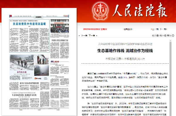 《人民法院报》报道大兴安岭呼中区法院:生态基地作纬线 流域协作为经线