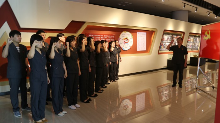 参观结束前,大家面对党旗,高举右拳,进行了庄严的集体宣誓。铿锵有力的宣誓声表达为党的事业奋斗终身的决心和坚定信念。